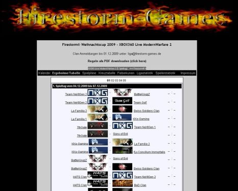 Der Weihnachtscup des seit 2007 aktiven Spiele-Online-Shops Firestorm-Games.de startet mit 15 Teams am 04.12.2009 seinen ersten Spieltag. Die Teams rekrutieren sich aus sogenannten E-Sport-Clans, die mit ihren Konsolen online gegeneinander antreten. Firestorm-Games hat Preise im Gesamtwert von über 250,- € ausgelobt, die auf die Podestplätze und den …