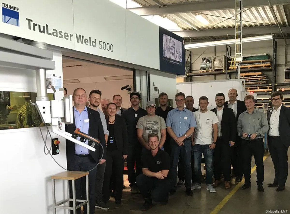 Hilpoltstein, 18. Juli 2018 – Vergangene Woche öffnete die LMT Leuchten + Metall Technik GmbH in Hilpoltstein für einen Tag ihre Pforten, um einem geladenen Kundenkreis des Ditzinger Maschinenherstellers TRUMPF Gelegenheit zu geben, sich den innovativen Maschinenpark des Leuchten- und Metallfertigungsspezialisten genauer anzusehen. Auf der Agenda des TechDays standen informative Vorträge rund um das effiziente Laserschweißen, eine Live-Vorführung der TRUMPF TruLaser Weld 5000 sowie ein Impulsvortrag zum Crowdfunding als Finanzierungsalternative. „Dass LMT seinen Vorzeige-Maschinenpark für unsere Kunden geöffnet hat, freut uns sehr. So konnten wir praxisnah zeigen, wie schnell der Laser schweißt und welche hervorragende Nahtqualität er in der Blechfertigung erreicht“, erklärt Nikolaus Wagner, Leiter Vertrieb Laserschweißen in der Blechfertigung bei der TRUMPF GmbH + Co. KG.