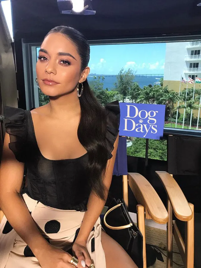 Seriös, sympathisch und mitfühlend - Vanessa Hudgens überzeugte alle mit ihrem Look kreiert von Star Stylist Chad https://www.instagram.com/chadwoodhair/) mit T3 Micro Tools auf Ihrer US Press Tour zum neuen Film Dog Days.