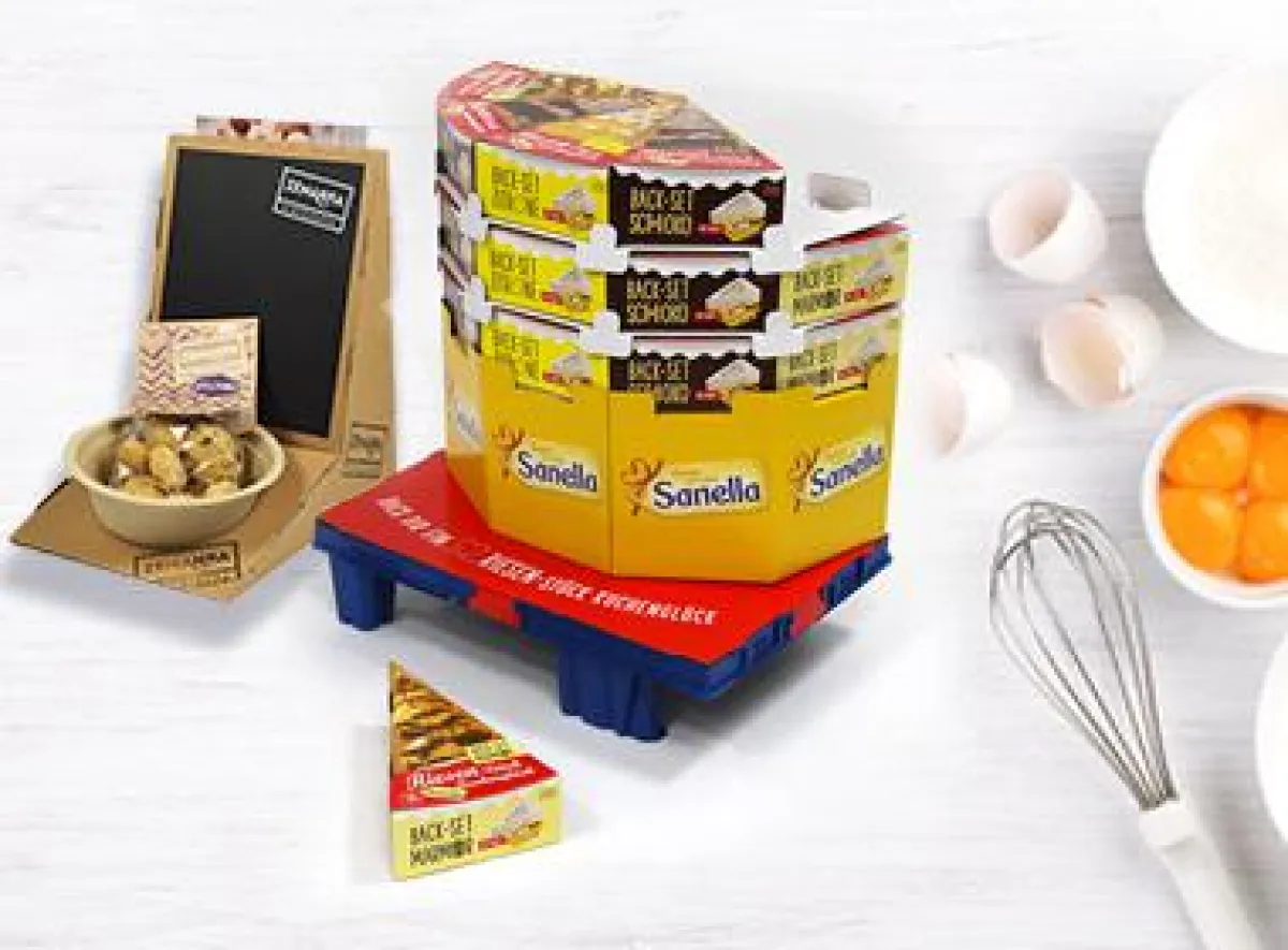 Palettendisplay und Umverpackung mit Wellpappe-Backform für Sanella Back-Set