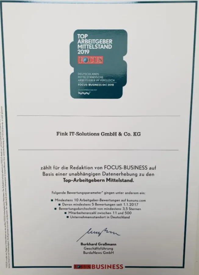 Sie lesen gerade: Fink IT-Solutions – Arbeitgeber des Mittelstands 2019