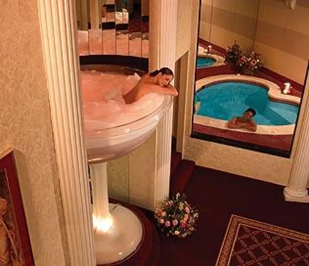 Die einzigartigen „Champagner Towers“ sind das Markenzeichen des Caesars Pocono Resort: über zwei Meter hohe Whirlpools in Form eines Champagner-Glases. Die bizarre Konstruktion steht frei im Raum und ist über eine Treppe zu erreichen. Hier heißt es: Romantik zelebrieren. Die noble Anlage in den Pocono Mountains im Norden Pennsylvanias lockt vor allem frisch Vermählte. Neben dem extravaganten Badevergnügen bestechen die Zimmer des Caesars durch weitere romantische Details wie Waschbecken in Herzform, Massagetisch, Himmelbett und Kamin. Je nach Geschmack wohnt man römisch, ägyptisch oder modern. Eine Nacht „in Rom“ kostet beispielsweise im November 450 Dollar. Wer sich diesen Luxus leistet, möchte vermutlich jede Minute in seiner fantasiereichen Bleibe verbringen. Dennoch: die wald- und wasserreiche Umgebung bietet rund ums Jahr Möglichkeiten, sich zu erholen oder aktiv zu sein, von Wildwasserfahrten bis hin zum Skilaufen. Weitere Informationen unter www.caesarspoconoresorts.com
