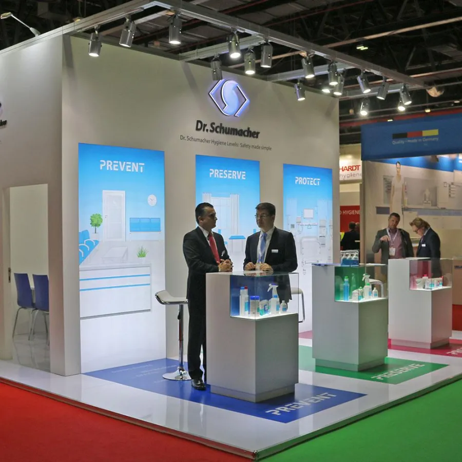 Im Laufe der Jahre hat die Arab Health für die Dr. Schumacher GmbH zunehmend an Bedeutung gewonnen. War das Unternehmen in den ersten Jahren noch mit einem kleinen Messestand in Standardausführung vertreten, vergrößerte sich die Standfläche zunehmend. „Seit drei Jahren beauftragen wir ein Messebauunternehmen vor Ort für die Realisierung unseres eigenen Standkonzeptes. Damit rücken wir deutlich stärker in den Fokus der Besucher und es ist uns gelungen, die Anzahl der Gespräche mit interessierten Fachbesuchern um rund 20 Prozent zu steigern“, so Michael Pfaffenbach, Head of International Sales. „Aber nicht nur die Quantität, auch die Qualität der Gespräche nimmt kontinuierlich zu. Die positive Entwicklung der letzten Jahre bestärkt uns, auch künftig Aussteller auf der Arab Health zu sein.“