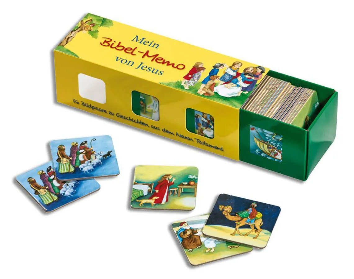 Die Karten zeigen bekannte Geschichten mit Jesus aus den Evangelien. Detailreiche Illustrationen zu Erzählungen wie „Die Heilige Nacht“, „Der gute Mann aus Samarien“ und „Jesus segnet die Kinder“ laden die ganze Familie zu spannenden Spielrunden ein. Bibel-Memo eignet sich ebenso für spielerisches Lernen in Kindergärten, Kinderhorten, Grundschulen und in der Gemeindearbeit mit Kindern.