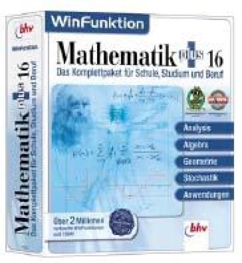 WinFunktion Mathematik Plus 16 enthält ein breit gefächertes Kontingent an Informationen, Simulationen und Hintergrund-Informationen sowie Unterstützung bei Mathematikaufgaben – die ideale Lernhilfe für die Schullaufbahn ab der 5. Klasse. 600 Teilprogramme mit rund 1.700 Themenbereichen wie Analysis, Algebra, Arithmetik, Planimetrie u.v.m. unterstützen und begleiten den schulmathematischen Unterricht.