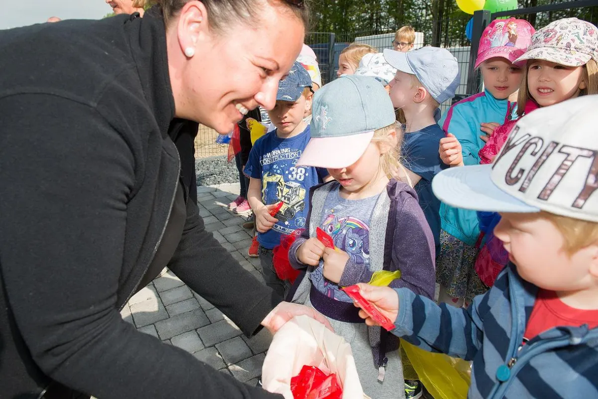 Gesagt – getan: nun pflanzen die „Neumühler Strolche“ Zukunft! Die Kita-„Strolch“-Kinder haben Peter Westphal besucht und sich bei ihm und der Town & Country Stiftung für den symbolischen Scheck bedankt, der ihnen überreicht wurde. Noch, das zeigt eines unserer Bilder, steht nur der von Peter Westphal und seinem Team übergebene Strauch – in naher Zukunft wird es dort grün und grüner!