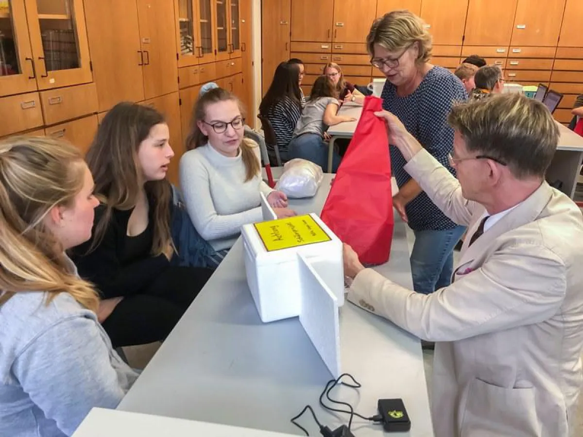 „Könnt ihr berechnen, wo genau der Wetterballon landen wird?“, fragt Dr. Andreas Goppelt, CTO und Leiter im Bereich Forschung und Entwicklung bei Ottobock, dazu einen Schüler der „Flugleitungsgruppe“: „Exakt können wir das noch nicht vorhersagen, wünschenswert wäre der Raum Göttingen, aber auch Leipzig oder die Grenze zu Polen wären je nach Wind möglich.“ Gewissheit über die exakte Position liefert dann ein GPS-Sender.