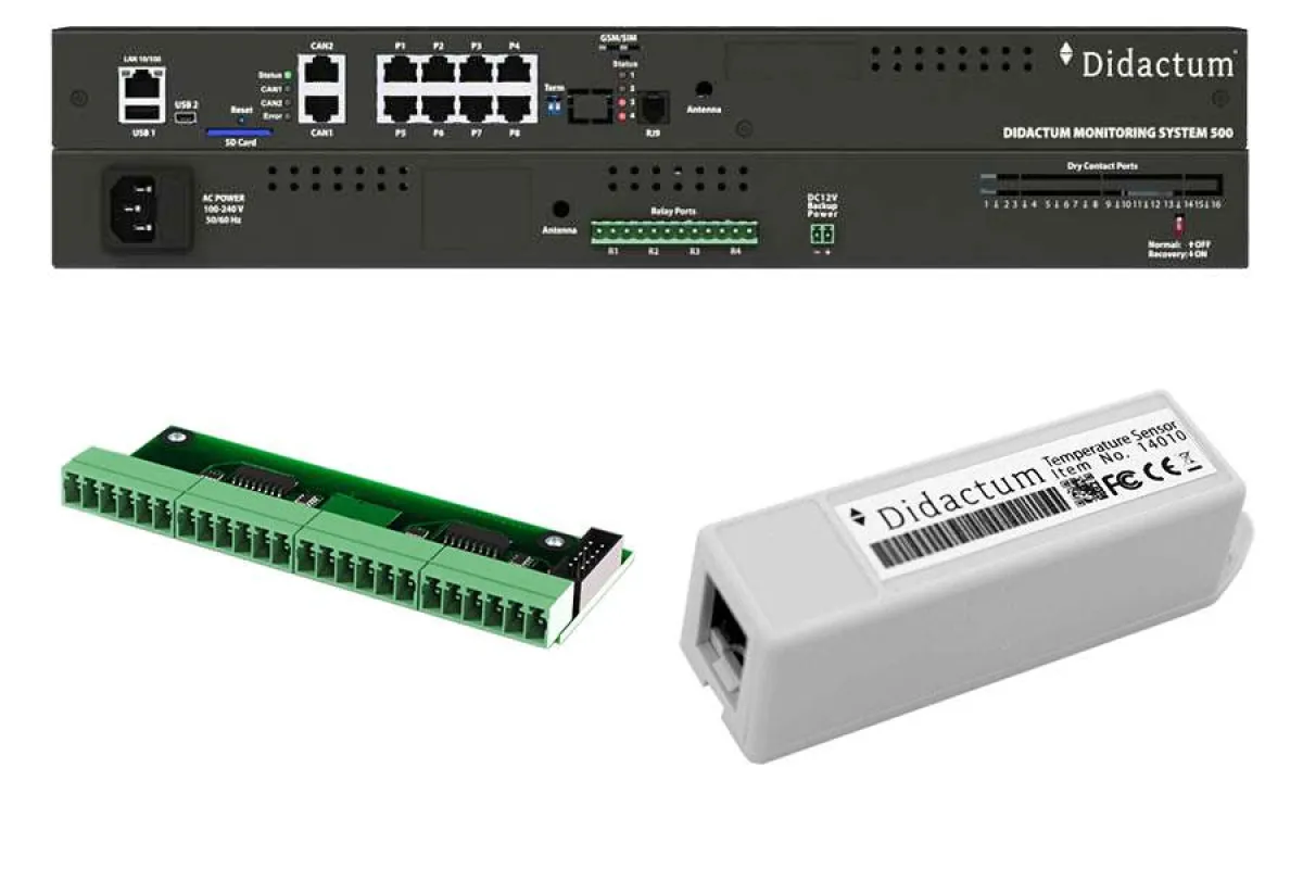 Da jedes IT Alarmsystem der Marke Didactum mit I/O Kontakten ausgestattet ist, kann man über Ethernet Netzwerk digitale Kontakte überwachen. Beispielsweise können hier die potentialfreien I/O Kontakte der Heizungs- oder Klimaanlage kontrolliert und gesteuert werden. Die gewünschten Aktionen werden in der eingebauten Logik des IT-Alarmsystems abgebildet. Ideal für die betriebliche IT Notfall Planung.