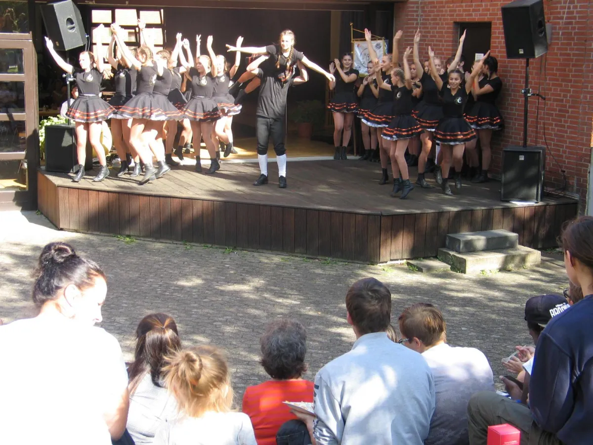 Viel Spaß gab es bei den Auftritten auf der CJD Bühne draußen vor der Aula. Das bunte Bühnenprogramm begeisterte mit dem Auftritt der CJD Showdance Gruppe NOFILTER unter Leitung von Pädagogen Henning Druckrey und Julia Geiß und der CJD Schulband sowie der Tanzgruppe Kölsche Greesberger und der Kölschen Band Palaver.
