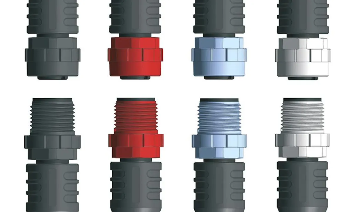Kunststoffüberwürfe haben gegenüber Edelstahlüberwürfen einen entscheidenden Vorteil: Sie sind eine kostengünstige, aber keinesfalls billige Alternative. Die von ESCHA entwickelten Kunststoffüberwürfe sind äußerst robust und können sowohl von Hand, als auch mit einem Drehmomentschlüssel angezogen werden. Sie sind medien- und temperaturbeständig und eignen sich insbesondere für Applikationen im Nutzfahrzeugbereich oder im Agrarsektor. Zudem bietet ESCHA die Kunststoffüberwürfe in vier Farben an (schwarz, grau, rot und blau). Dadurch können Steckverbinder ganz einfach markiert werden, wodurch eine schnelle Zuordnung bzw. Unterscheidung möglich ist.