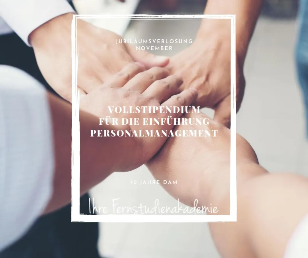 (openPR) Die Deutsche Akademie für Management (DAM) verlost im November ein Vollstipendium für ihren Fernlehrgang Einführung Personalmanagement. In dem 3-monatigen berufsbegleitenden Angebot können 3 Module aus dem kompletten Personalmanagement-Fachbereich der DAM belegt werden. Die Registrierung für die Verlosung endet am 30.11.2019.