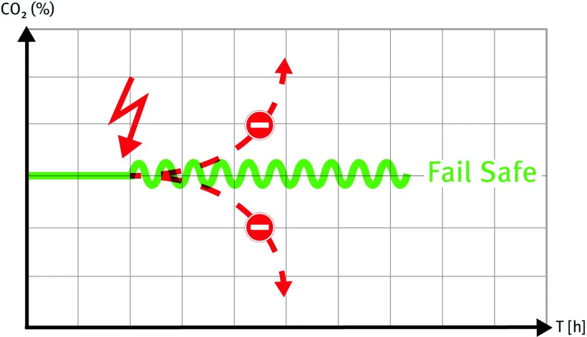 Der Nutzen der Fail-Safe-Funktion ist, dass die CO2-Konzentration im Falle eines Sensor-Defekts in einem Bereich gehalten wird, der das Überleben der Zellkulturen ermöglicht.