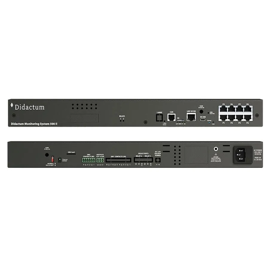 Jedes IP basierte Datenlogger- und Alarmsystem von Didactum arbeitet ohne Abhängigkeiten von weiterer Hard- und Software. Eine Integration in SNMP kompatible Managementlösungen und / oder Messdaten Visualisierungssoftware wird unterstützt, so dass die Messdaten über LAN / WAN fernübertragen werden können. Die Bedienung erfolgt über das deutschsprachige HTML5 Webinterface.