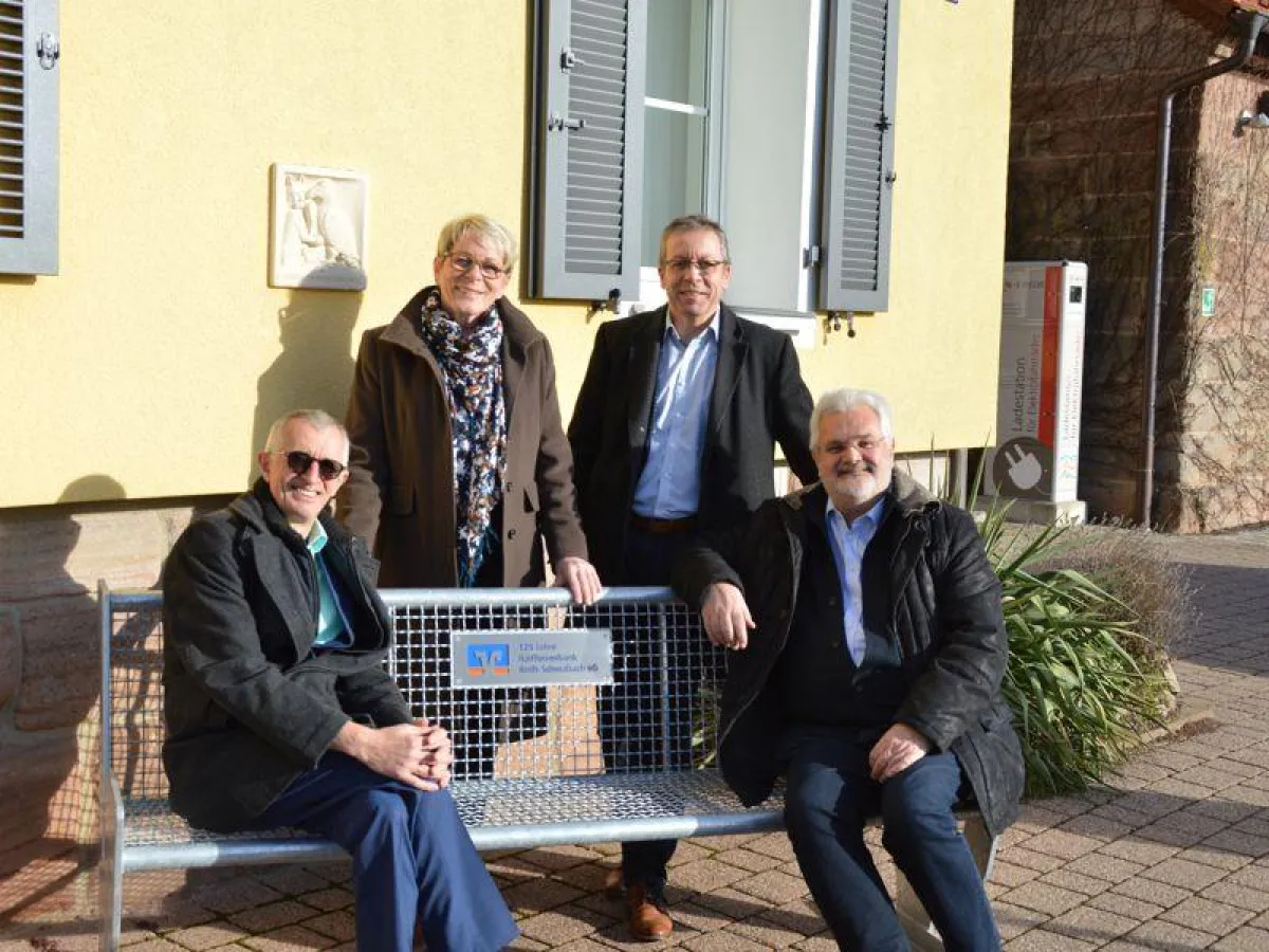 Ganz im Sinne des Genossenschaftsgedankens sollte jeder vom 125-jährigen Geburtstag der Raiffeisenbank Roth-Schwabach profitieren und sich mit der Raiffeisen-Familie freuen. Insgesamt 21 Ruhebänke wurden in den Kommunen im Geschäftsgebiet der Raiffeisenbank Roth-Schwabach aufgestellt. Zwei davon laden jetzt in Kammerstein zur Verschnaufpause ein. Eine Bank steht vor dem Rathaus, ein weiteres Exemplar regt künftig Pilger und Wanderer bei der Jakobuskapelle zur Ruhepause in der schönen Natur an.
