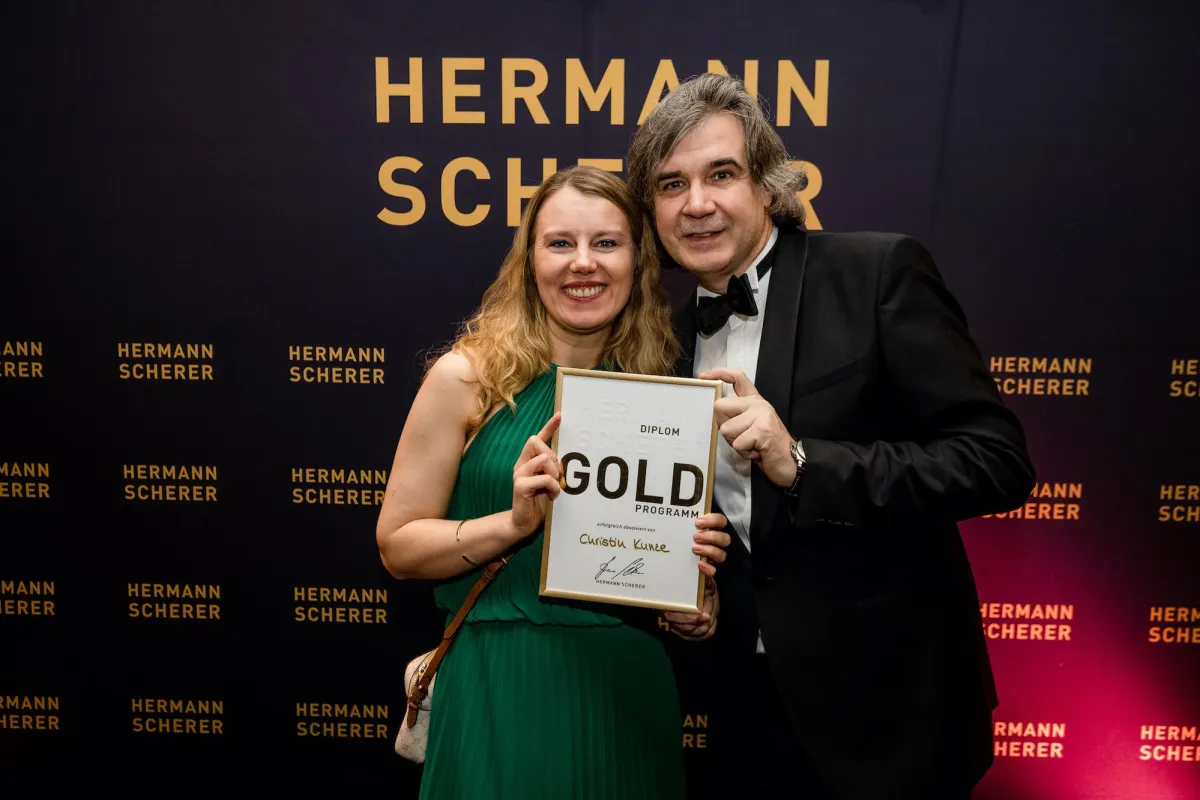 Christin Kunze aus Bonn erhielt für Ihre Teilnahme ein Zertifikat von Top-Speaker und Coach Herrmann Scherer. (Bild: Dominik Pfau)