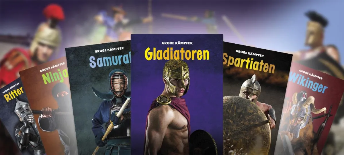 Die Reihe „Große Kämpfer“ entführt junge Leser (ab 9 Jahren) in die aufregende Welt bekannter Krieger. Über leicht verständliche, altersgerechte Texte und realistische Fotos auf geheimnisvollem Hintergrund tauchen sie in die spannende Welt der Samurai, Gladiatoren oder Spartiaten ein. Es wird von deren Ausbildung, Waffen, Kleidung und Traditionen berichtet. So erfahren Kinder mehr über die geschichtlichen Hintergründe und lernen schwierigere Begriffe zum Thema, die in einem Glossar erklärt werden. Wie wurde man zu einem Gladiator? Warum trugen die Spartiaten eine rote Tunika? Welche Waffen benutzten die Samurai? Und warum endete die Zeit dieser großen Krieger irgendwann? Das und vieles mehr lesen Kinder in den einzelnen Bänden dieser Serie. „Kleiner Preis und große Wirkung, auch für Schulbibliotheken gerne empfohlen.“ (Damaris Gastler, ekz-Publikation ID bzw. IN 2020/01). Die Reihe eignet sich ebenfalls zur Förderung leseschwacher Kinder. Ein Code im Buch macht dieses auch online als e-Buch und Hörbuch zugänglich, beispielsweise für das gemeinsame Lesen im Klassenzimmer.