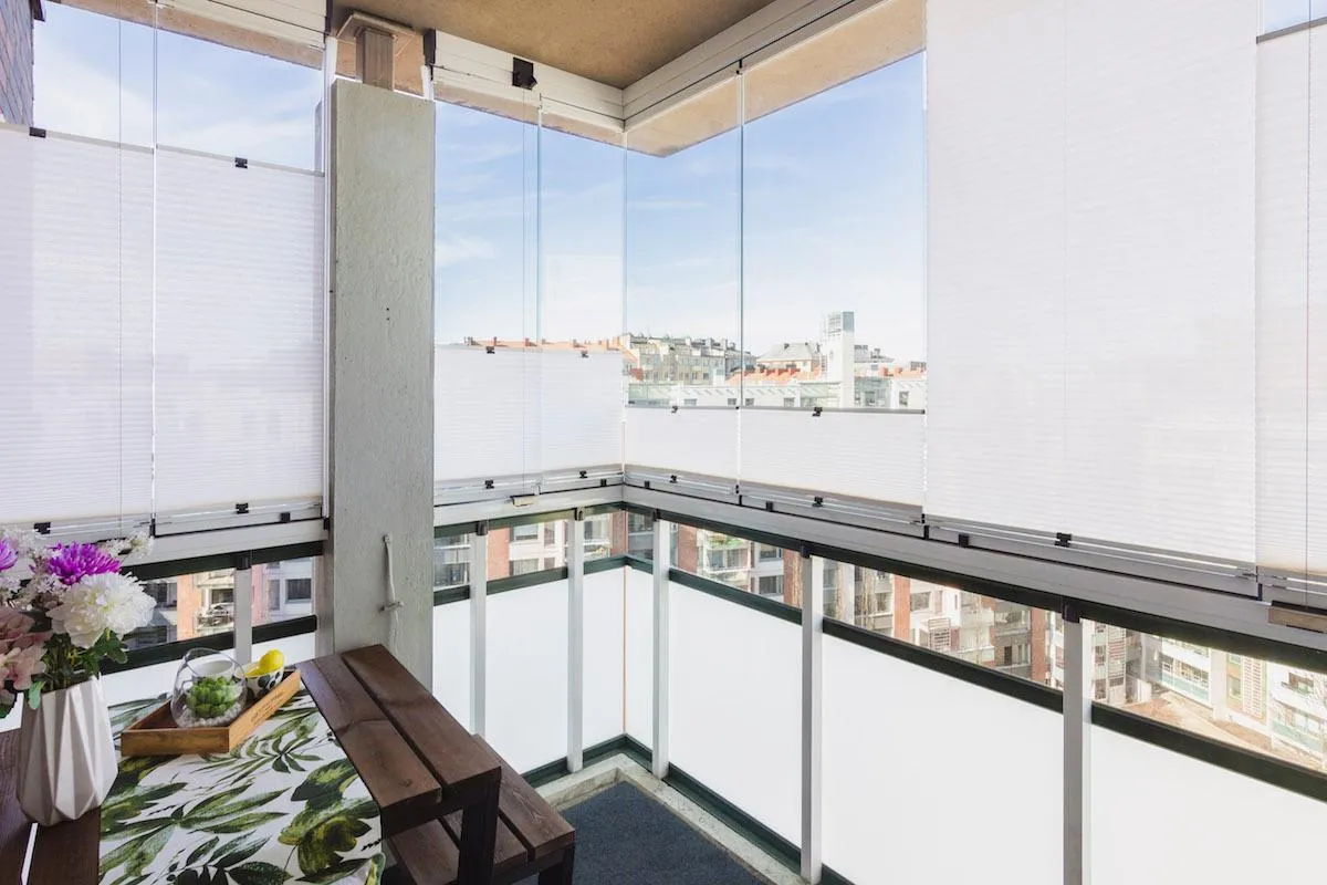Leinfelden-Echterdingen, im März 2020 – Lumon Balkon- und Terrassenverglasungen bieten neben Schutz vor Lärm und Kälte auch maximalen Lichteinfall und einen ungehinderten Ausblick. Das filigrane, rahmenlose Design unterstreicht die Eleganz der Lösung. Mit den Lumon Sonnenschutzplissees ist der erweiterte Wohnraum auch bei hohen Temperaturen angenehm und flexibel nutzbar. Sie sind maßgeschneidert, ein- oder zweiteilig und in zwei Transparenzstufen erhältlich. Welche Glasscheiben des Systems abgedunkelt sein sollen, entscheidet der Nutzer individuell, da die Plissees an jeder einzelnen Scheibe der Balkon- oder Terrassenverglasung angebracht werden. Somit wird auch das Öffnen und Schließen der Verglasung nicht beeinträchtigt.