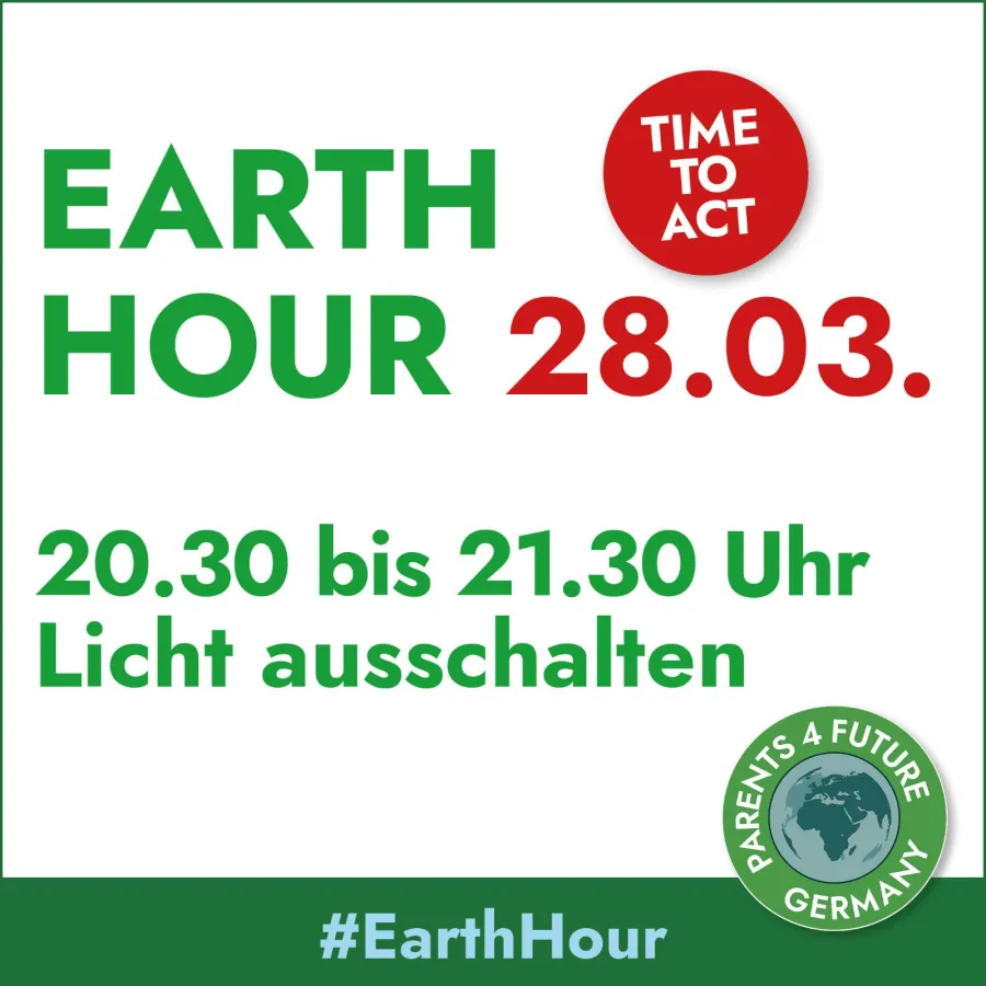 „Lasst uns in der Earth Hour nicht nur das Licht ausschalten, sondern alle Geräte im Haus, die auf Standby stehen. Stellen wir für diese eine Stunde alle unsere Social Media-Aktivitäten ein - kein Facebook, kein Instagram, kein Twitter, kein TikTok! Dabei machen wir die Erfahrung, wo wir überall Strom - und damit zurzeit noch Kohle- und Atomstrom - verbrauchen. Der Kampf gegen die Klimakrise heißt auch konsumkritisch zu sein“ so Markus Burbach von Parents For Future.