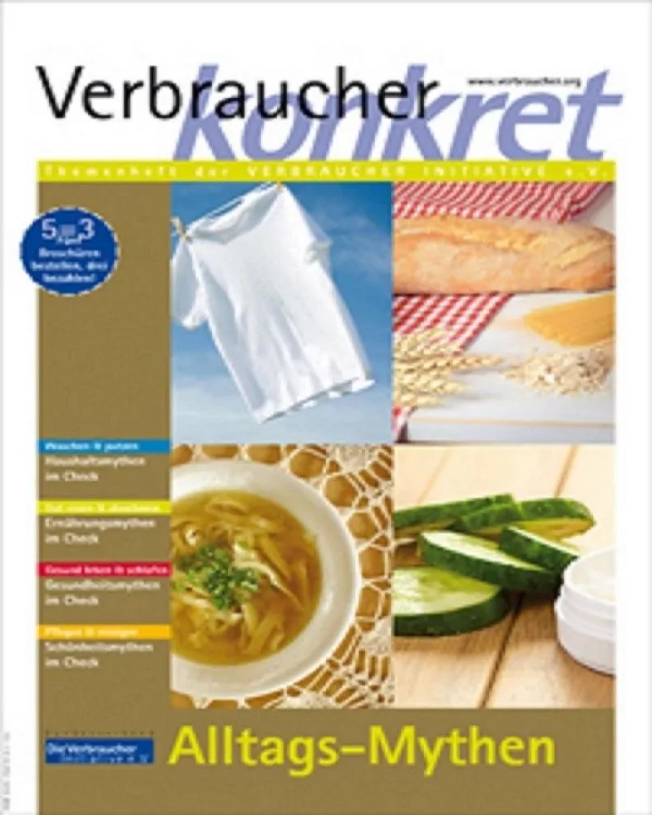 Was von anderen Gerüchten oder Halbwahrheiten rund um Essen, Gesundheit, Haushalt und Kosmetik zu halten ist, beleuchtet die VERBRAUCHER INITIATIVE in dem Themenheft „Alltags-Mythen“. Das 24-seitige Heft kann für 2,00 Euro (zzgl. Versand) unter www.verbraucher.com bestellt bzw. heruntergeladen werden.