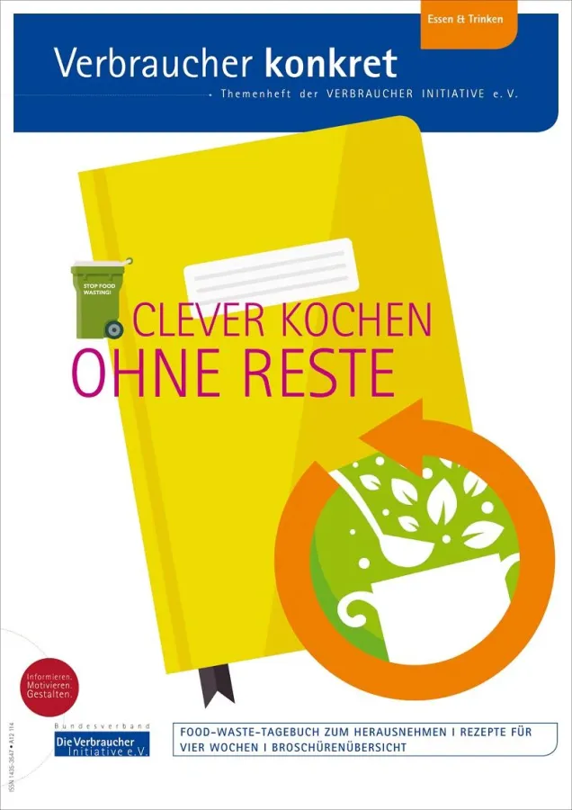 Die 16-seitige Broschüre „Clever kochen ohne Reste“ der VERBRAUCHER INITIATIVE enthält 28 überwiegend vegetarische Rezepte und ein Food-Waste-Tagebuch als Selbst-Check. Sie kann für 2,00 Euro (zzgl. Versand) unter www.verbraucher.com bestellt oder heruntergeladen werden.