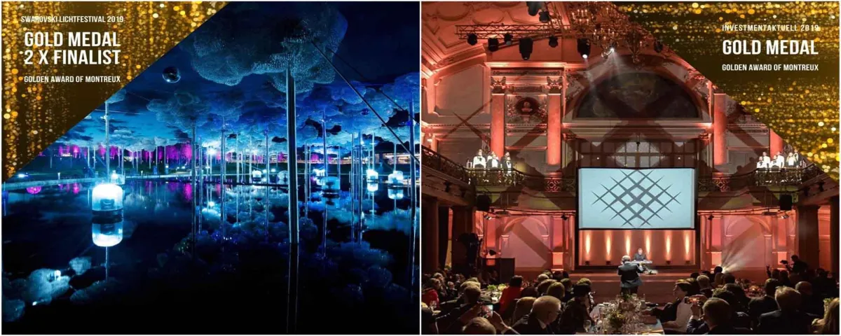 „Gold wert“ war auch ein zweites insglück-Projekt: Mit der Inszenierung des Lichtfestival 2019 in den Swarovski Kristallwelten in Wattens konnte die Kreativagentur die internationale Jury in der Event-Kategorie: Set Design / Architektur überzeugen und erhielt dafür einen weiteren Golden Award of Montreux. Für das preisgekrönte Eventformat zeichnete insglück neben künstlerischer Leitung, Licht und Sound auch die Umsetzung vor Ort verantwortlich. Die Lichtinstallationen wurden in enger Zusammenarbeit mit Lichtdesigner Björn Hermann kreiert.