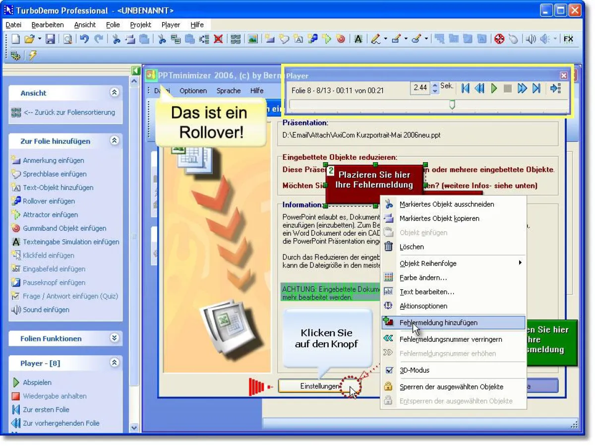 (openPR) Reutlingen, 21.11.2006 – TurboDemo 7.5 – Testen Sie die aktuelle Version mit vielen neuen Funktionen
