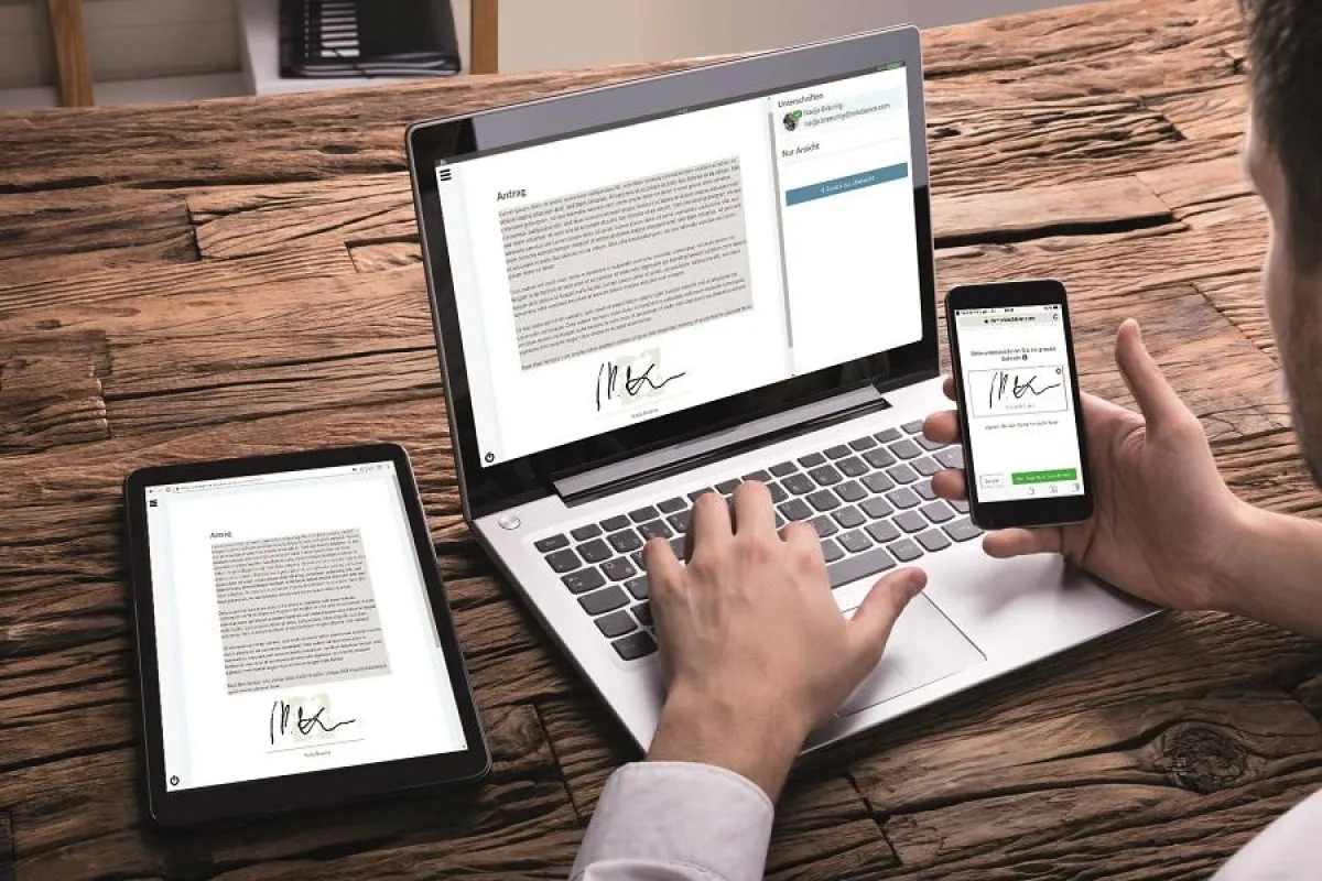 „Egal, ob sich die Gesprächspartner gerade gegenübersitzen oder an unterschiedlichen Orten aufhalten – Sie bereiten die Vereinbarung bereits während des Gespräches vor und unterzeichnen den Vertrag meist noch im Gespräch auf ihrem Computer oder Smartphone“, erklärt Steffen Landgraf, Geschäftsbereichsleiter für das Thema digitale Unterschrift bei der Solutiance AG.