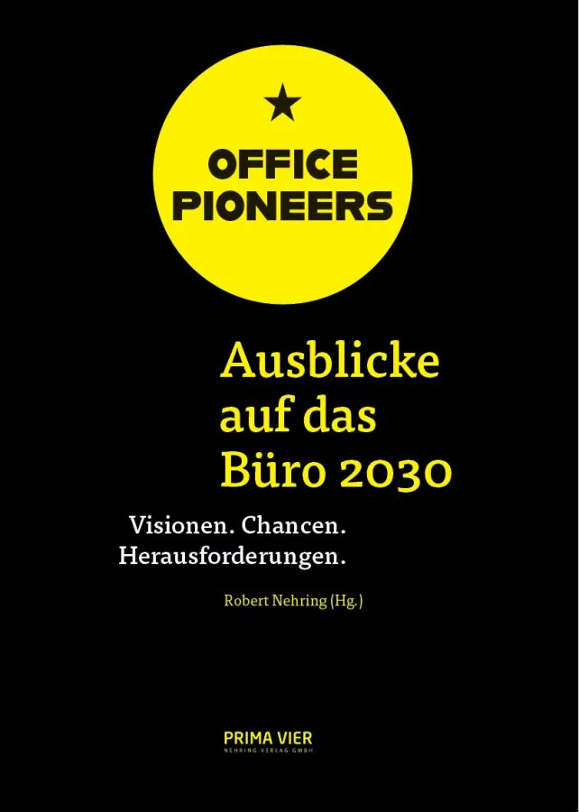 „OFFICE PIONEERS. Ausblicke auf das Büro 2030“, Robert Nehring (Hg.), PRIMA VIER Nehring Verlag, Berlin 2020, 208 Seiten, DIN A4, 49,90 € (Hardcover), 39,90 € (E-Book).