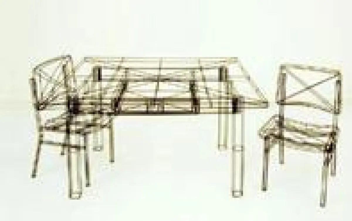 Auch dem Bildhauer Thomas Raschke geht es um die kunstimmanenten Möglichkeiten von Kopier- und Nachahmungsvorgängen. Ihn interessiert die Durchdringung der aktuellen Dingwelt des Westens. So existieren die von ihm aus Draht nachgebauten (digitalen) Konstruktionszeichnungen, sogenannte „Wireframes“ von Werkbänken, Musikstudios oder technischen Geräten, konsequent in allen Details als plastisches Ganzes im zeichnerischen Raum. Zwischen Installation und Objekt untersucht Raschke, wie unser Blick in das Innere eines Gegenstandes gelangen kann bei gleichzeitiger Wahrnehmung seiner äußeren Gestalt.