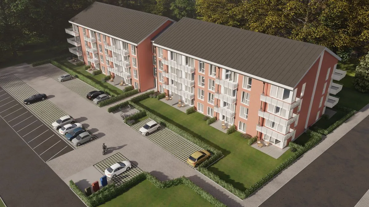 Bei den Wohnungen selbst handelt es sich um Zwei-Zimmer-Apartments mit Wohnflächen zwischen 56 und 72 Quadratmetern. Diese verteilen sich auf ein sehr geräumiges Wohnzimmer mit Küche sowie ein Schlafzimmer, einen Abstellraum und ein modern eingerichtetes Bad. Große Fensterfronten sorgen dafür, dass viel Tageslicht in die Räume gelangt. Darüber hinaus verfügt jede Wohneinheit über eine Terrasse oder einen Balkon. Mit breiten Türen und Fluren sowie einem Aufzug sind die Wohnungen auf eine Nutzung bis ins hohe Alter ausgelegt. Auch in Sachen Nachhaltigkeit überzeugen die Gebäude. Neben einer kompletten Dämmung erfolgt die Versorgung mit Wärme über ein zentrales Blockheizkraftwerk, welches zugleich Strom erzeugt. Insgesamt erfüllt dieses Projekt die Anforderungen eines KfW-Effizienzhauses 55. Dies eröffnet den Eigentümern den Weg zu KfW-Darlehen mit attraktiven Zinskonditionen bzw. zu Förderungen durch Tilgungszuschüsse, die nicht zurückzuzahlen sind. Mehr Informationen zu dem Projekt gibt es hier . Zusätzlich zu dem Neubauprojekt sind in Stolzenau weitere 100 Apartments durch den Umbau eines nicht mehr genutzten Klinikgebäudes geplant.
