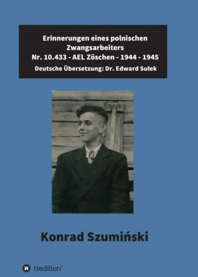 Das Buch "Erinnerungen eines polnischen Zwangsarbeiters" von Konrad Szumiński wurde von Dr. Edward Sulek ins Deutsche übersetzt und herausgeben. Die beiden Männer lernten sich vor einigen Jahren während der Gedenktage in Zöschen kennen. Konrad Szumiński hatte den hier veröffentlichten Teil seiner Biografie bereits kurz nach dem Krieg niedergeschrieben und die zwei Männer beschlossen gemeinsam, die Worte auch dem deutschen Leserkreis zugänglich zu machen. Das Buch ist ein interessanter Blick in die Vergangenheit und zeigt, warum Frieden so wichtig ist.