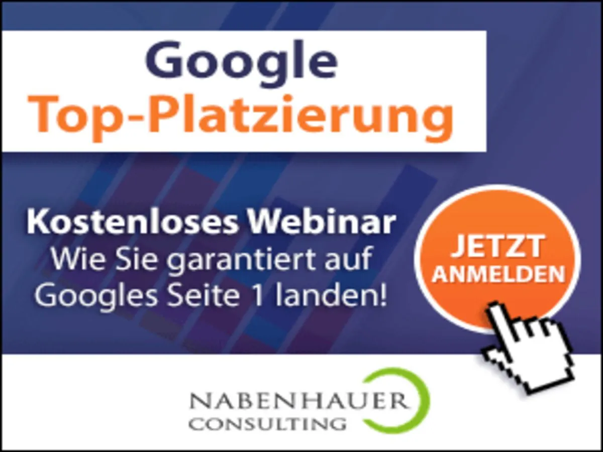 Im Bereich Suchmaschinenoptimierung und Umsatzsteigerung ist Nabenhauer Consulting bekannt als ein führendes und richtungsweisendes Unternehmen mit einer intensiven Fokussierung auf das Kerngeschäft. Im Webinar lernen die Teilnehmer, wie überlebenswichtig die Platzierung ihrer Webseite auf Googles Seite 1 für Ihr Unternehmen ist, welche Unterschiede, Vor -und Nachteile es beim Suchmaschinenmarketing und bei der Suchmaschinenoptimierung gibt und was für sie wichtig ist zu wissen. Hier mehr über den Webinar erfahren: https://nabenhauer-consulting.com/google-top-platzierung-webinar/