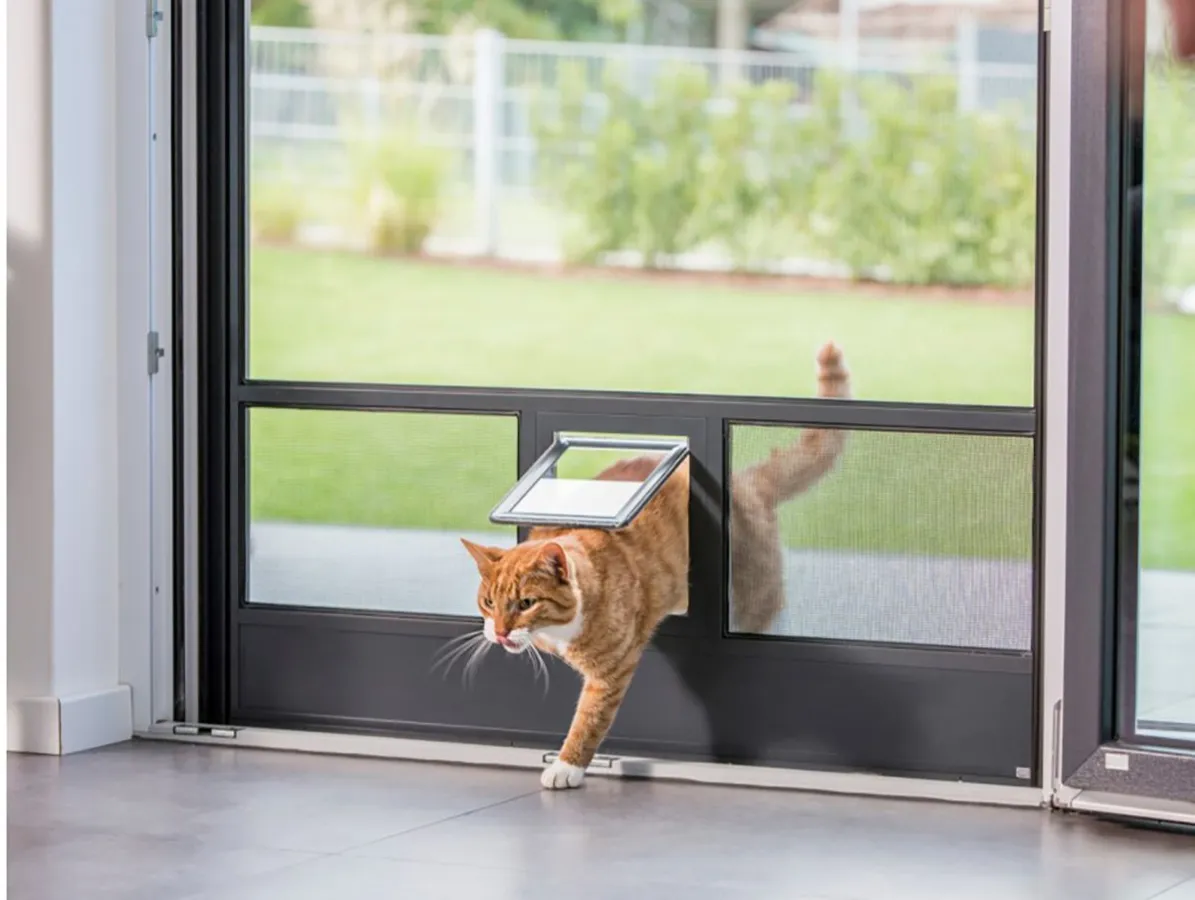 Für Katzen benötigt man ein spezielles katzensicheres Gewebe, welches auch den Krallen der Katzen nichts anhaben kann. Auch für Katzen kann man natürlich eine Katzenklappe integrieren.