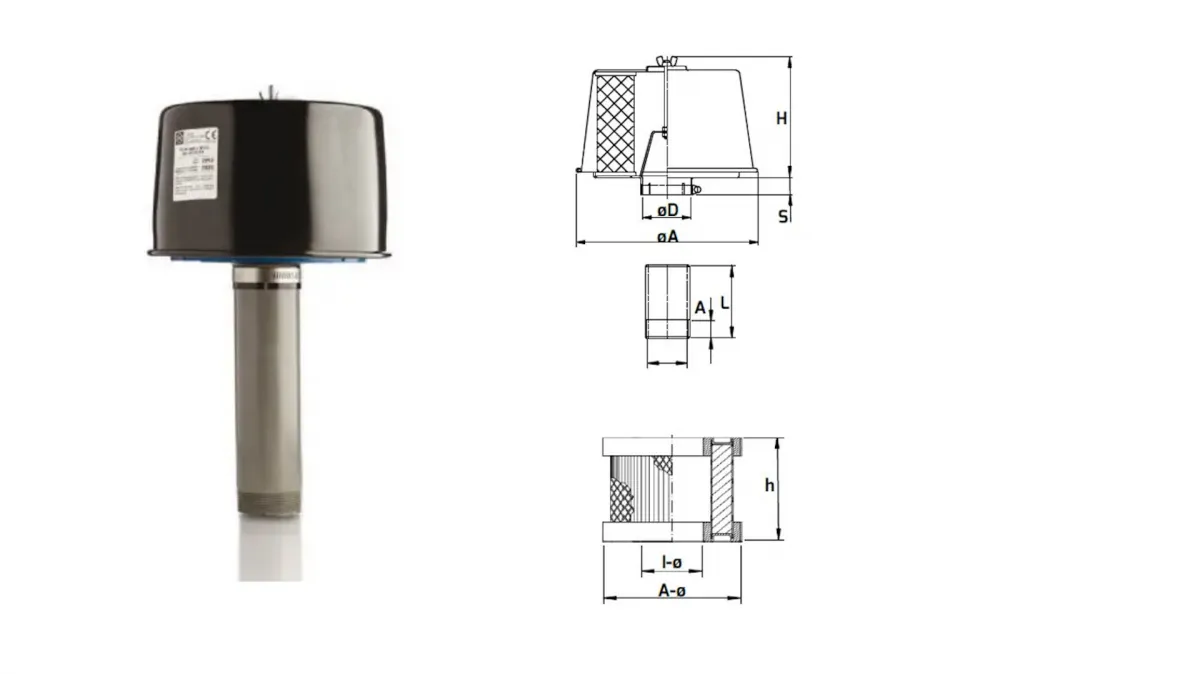 Der Ansaugfilter wird einbaufähig geliefert. Das Filterelement kenn aus Papier, Polyester oder Edelstahl geliefert werden. Eine lackierte Stahlhaube dient dem Schutz gegen Witterungseinflüsse. Eine Rohrschelle und ein Anschlussstück aus PVC ist im Lieferumfang enthalten.
