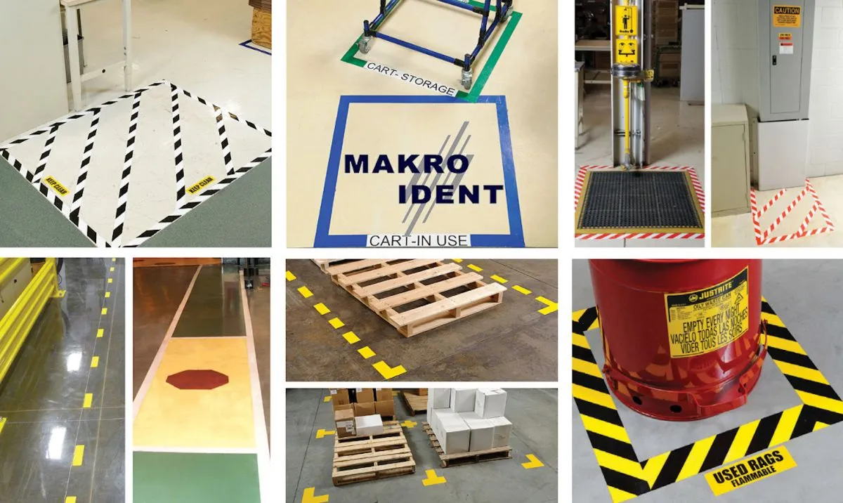 MAKRO IDENT stellt vor: die zuverlässigen visuellen und sehr beständigen Bodenkennzeichnungen, Bereichsmarkierungen und einfach zu bedruckende Klebebögen für das professionelle Gestalten von Schildern, Diagrammen und anderen Kennzeichnungen für den 5S / Lean-Bereich.