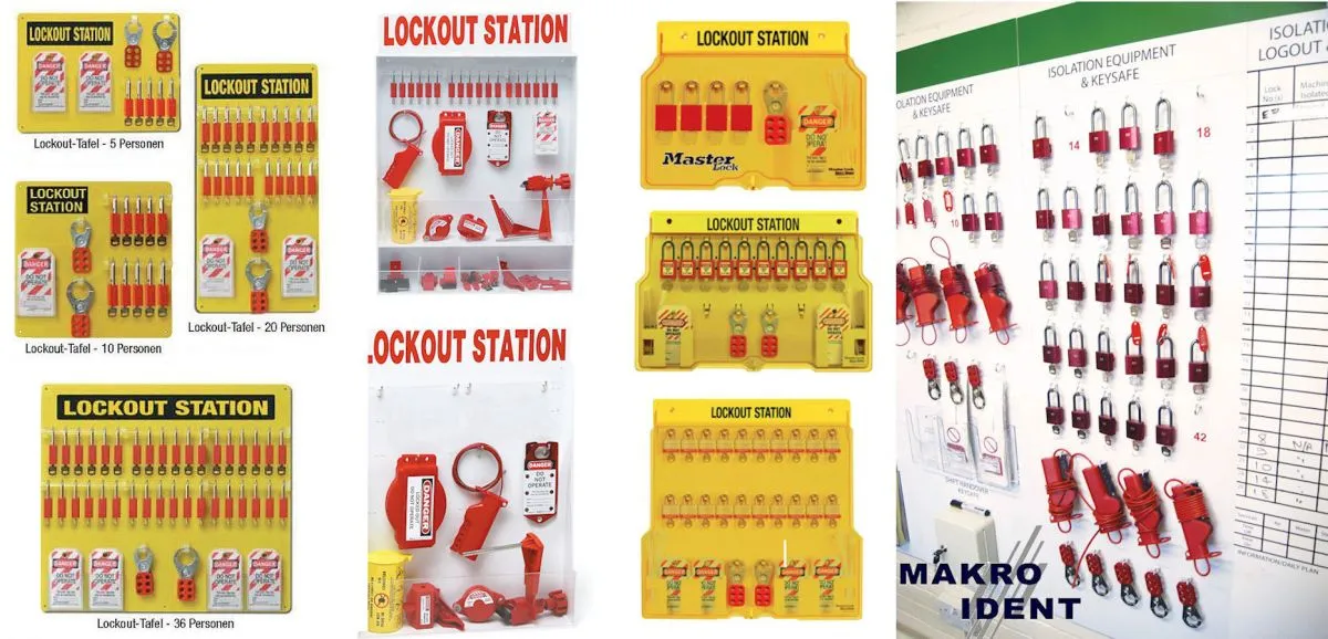 Neben den Shadowboards verfügt MAKRO IDENT über einige verschiedene Lockout-Stationen. Entweder offen oder abschließbar. Für spezielle Arbeitsumgebungen gibt es auch explosionsgeschützte Lockout-Stationen für den Einsatz in Zone 2.