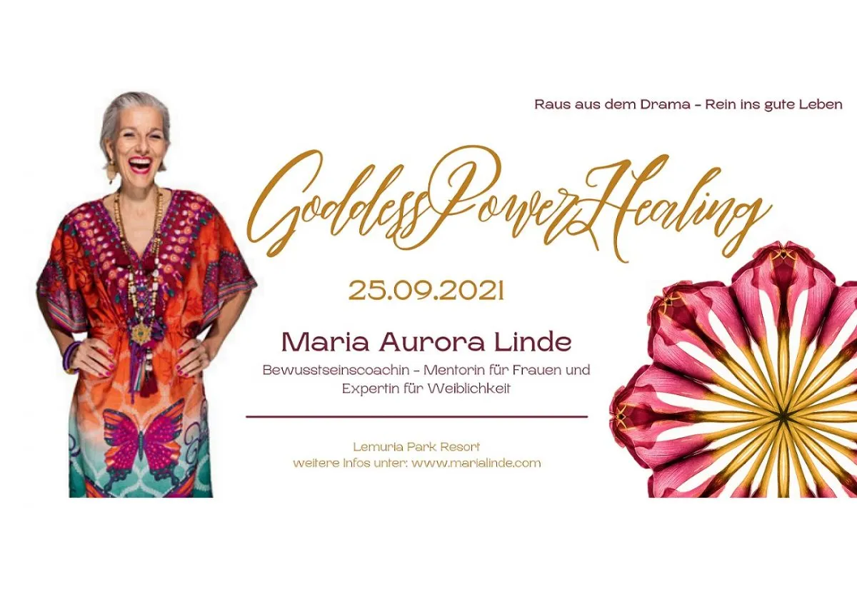 Um sich aus dem alten Dramadreieck-Spiel, insbesondere aus der tiefsitzenden Opferrolle, zu erlösen, bietet die sympathische Mentorin einen achtsamen, bewussten Umgang mit sich selbst, einen liebevollen und sicheren Vertrauensraum unter Frauen. Mit dem GoddessPowerHealing Celebration Event am 25. September 2021 im Lemuria Park Resort, lehrt sie mit Begeisterung die Teilnehmerinnen, was wahre Sisterhood unter Frauen und Selbstliebe in der Neuen Zeit bedeuten. Frei nach ihrem Motto: "Raus aus dem Drama - Rein ins gute Leben!" werden die Frauen an diesem besonderen Tag gemeinsam lachen, tanzen, singen und weinen und noch viel mehr. Ja, gemeinsam wird dieses einzigartige Frauenseminar ein wertvolles und tiefes emotionales Erlebnis für jede Frau werden. "Es ist unser Geburtsrecht, gesund, glücklich, erfüllt und frei zu leben!" Maria Aurora Linde unterstützt Frauen, in ihre weibliche Kraft und wahre Grösse zu kommen. Die Frau kommt als Königin zu diesem Special Event und geht tief dankbar, im Herzen erfüllt und glücklich als Göttin nach Hause. Maria Aurora Linde freut sich über jede offene und bereite Frau, die jetzt den inneren Ruf nach Veränderung spürt.