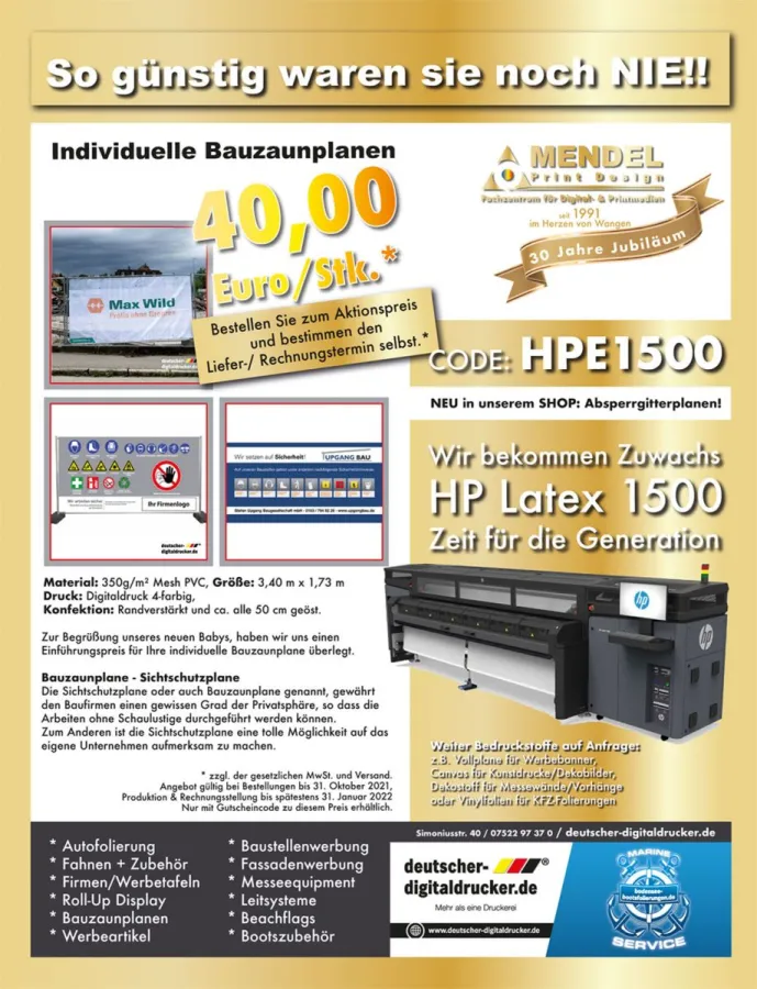 (openPR) Individuelle Bauzaunplanen für nur 40,00 Euro zzgl. MwSt. / Stück.