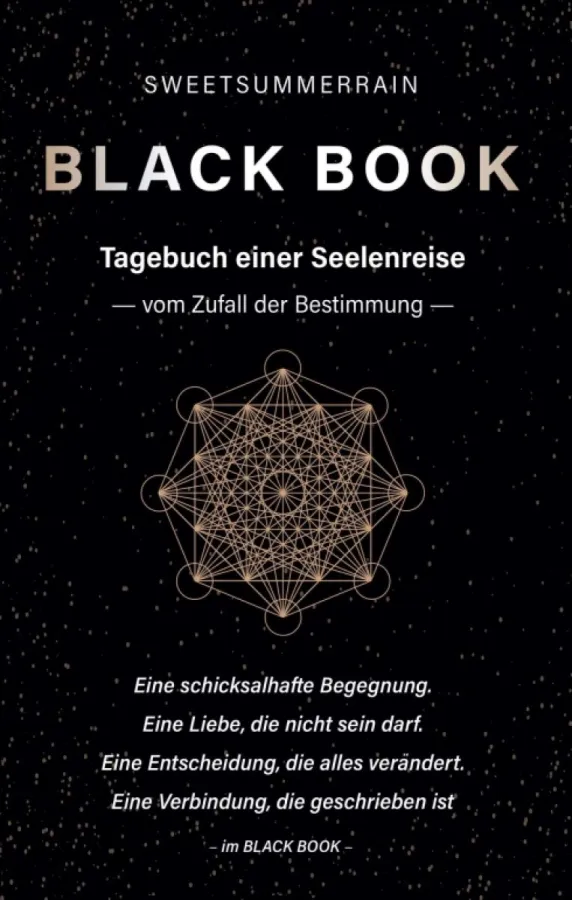 Der spirituelle Liebesroman "BLACK BOOK" von SWEETSUMMERRAIN ist spannend, wundersam, poetisch, spirituell, dramatisch und doch auch irgendwie "Krimi" bis zuletzt. Die Autorin, die unter einem Pseudonym schreibt, ist eine Frau, die in der Mitte ihres Lebens beginnt, die Welt mit anderen Augen zu sehen. Sie betrachtet alles mit Mut und Pioniergeist. Sie entdeckte auf ihrer Lebensreise, dass Menschen immer zu ihrer Berufung geführt werden, auch wenn sie längst die Spur gewechselt hatten. Deshalb existiert auch dieses Buch, denn es ist eine der Berufungen, denen die Autorin nun folgt: Es wollte und musste geschrieben werden.