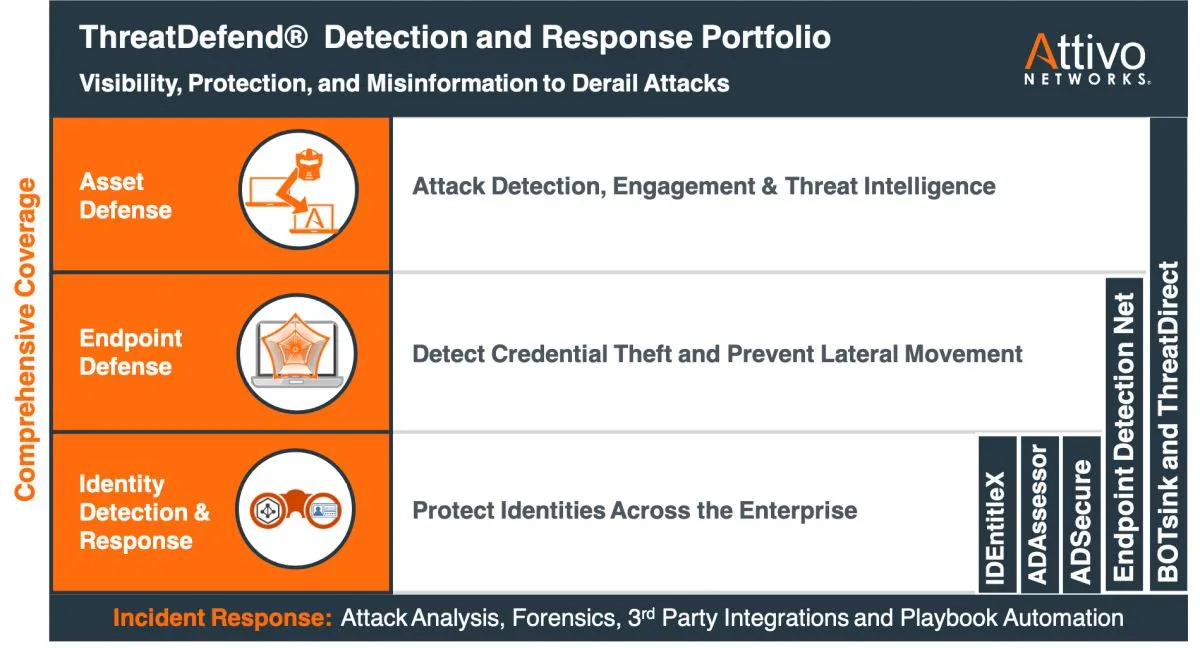 Attivo Networks ist ein führender Anbieter für Security-Lösungen, die auf Deception-Technologie basieren. Die Lösungen erkennen Angriffe, die auf lateralen Bewegungen basieren. Um unautorisierte Aktivitäten zu verhindern und aufzudecken, die von Insidern und externen Bedrohungen ausgehen, bieten sie eine aktive Verteidigung. Die langjährig kundenerprobte Attivo ThreatDefend-Plattform ist eine skalierbare Lösung, die Angreifer abfängt und zur Reduzierung der Angriffsfläche innerhalb von Anwendernetzwerken, in Rechenzentren, Clouds, an Remote-Arbeitsplätzen und speziellen Angriffsvektoren beiträgt. Mit innovativer Technologie zur Unterbindung und Fehlleitung lateraler Angriffsaktivitäten arbeitet die Lösung am Endpunkt, im Active Directory und im gesamten Netzwerk. Forensik, automatisierte Angriffsanalysen und eine native Integration von Drittanbieter-Lösungen optimieren die Reaktion auf Vorfälle.