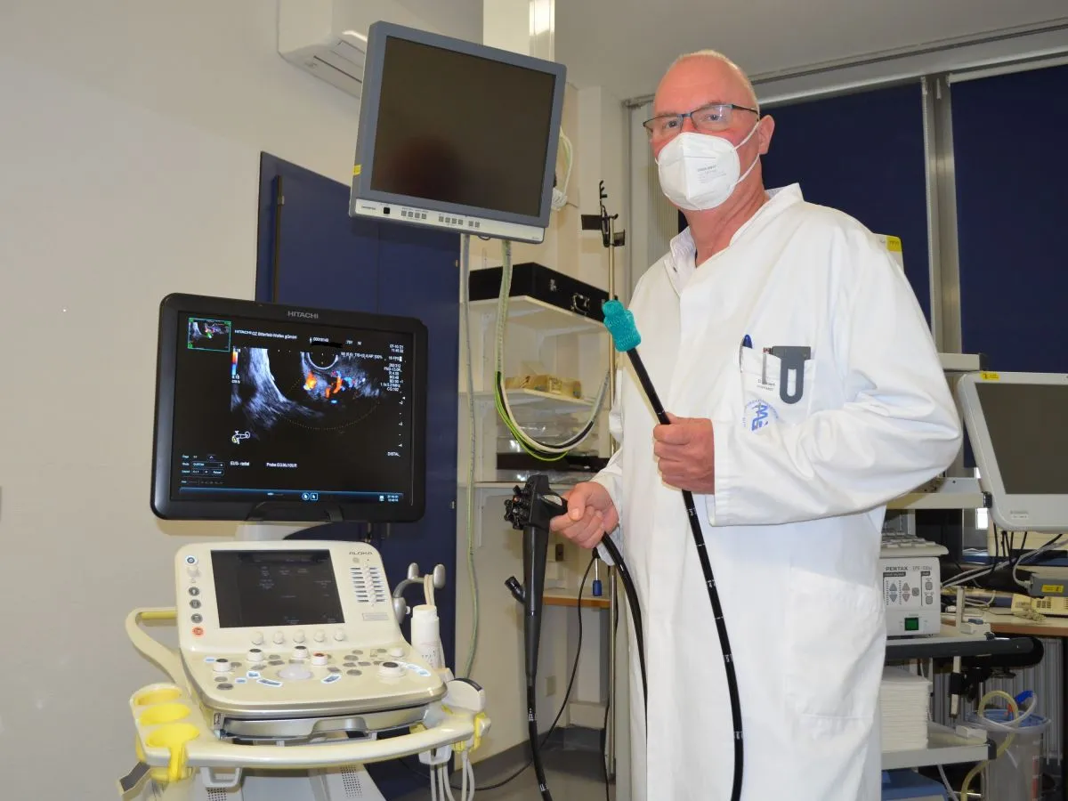 Der seit Sommer 2021 im Einsatz befindliche Endo-Sonograph bietet eine in dieser Form einmalige Gerätekombination im Gesundheitszentrum. "Es lassen sich dank HD-Bildqualität präzise Diagnosen sowie darauf aufbauend angemessene Behandlungen sicherstellen. Hinzu kommt der Digitaltransfer der Aufnahmen vom Gerät direkt ins Bildarchiv", weiß Chefarzt Dirk Kauert zu berichten.