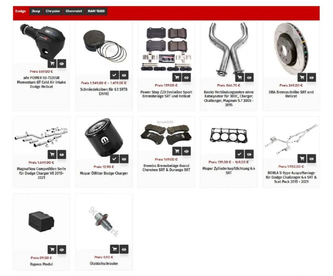 Je nach Modell bietet der Online-Shop von Kraftwerk ein bemerkenswertes Sortiment an qualitativ hochwertigen Teilen und Zubehör für Chrysler, Dodge, Jeep, RAM. Chevrolet, Cadillac und Hummer. Teile, die sowohl den Motor, das Fahrwerk als auch die Bremsen betreffen. Daneben gibt es Programmiergeräte und Kleinteile für typgerechten Service, für Wartung und Pflege.