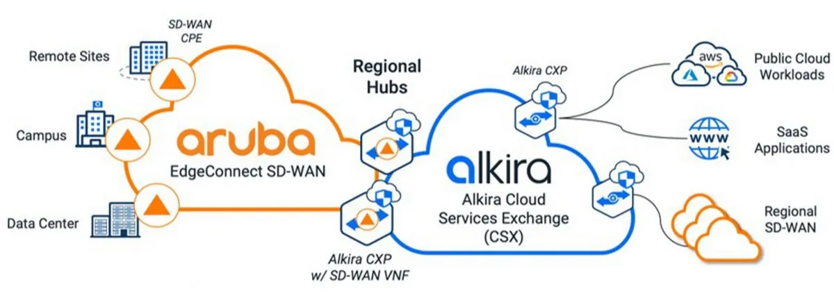 Alkira hat die Integration von Aruba EdgeConnect SD-WAN mit der Cloud-Networking-as-a-Service-Lösung Alkira Cloud Services Exchange (CSX) bekannt gegeben, die es Unternehmen ermöglicht, Ende-zu-Ende-Netzwerkkonnektivität mit Cloud-Workloads herzustellen. Der Datenverkehr von Edge-Anwendungen, der die SD-WAN-Fabric zur Cloud durchläuft, kann nun mithilfe von intent-basierten Richtlinien symmetrisch zu Firewalls in Alkira CSX gelenkt werden.