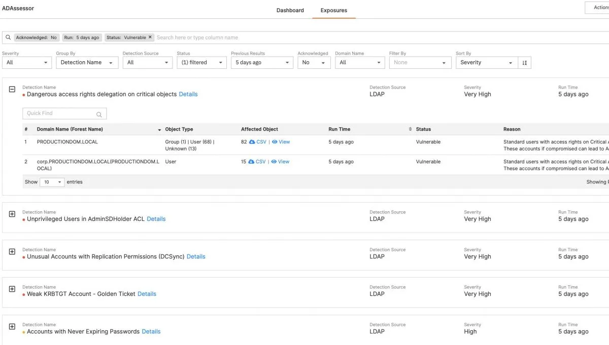 Zudem helfen IDR-Lösungen Unternehmen dabei, ihre Angriffsfläche zu verwalten, indem sie Einblick in kritische Schwachstellen wie an Endpunkten gespeicherte Anmeldeinformationen oder AD-Fehlkonfigurationen geben, die Angreifern den Zugriff auf vertrauliche Daten ermöglichen. Sie können auch übermäßig freizügige Berechtigungen in Cloud-Umgebungen identifizieren, die ungewollt sensible Daten exponieren.
