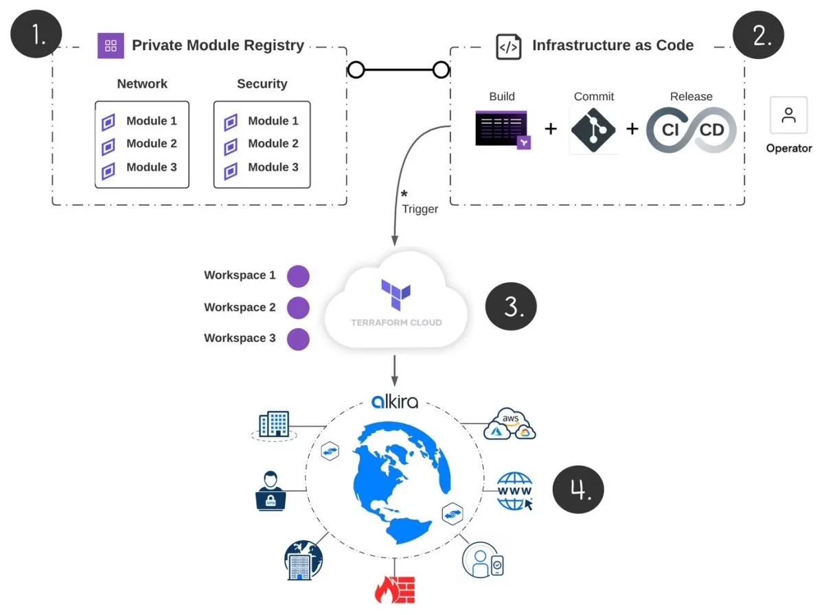 Alkira kündigte heute eine Integration mit Terraform von HashiCorp an, die Geschwindigkeit, Konsistenz und Automatisierung bei der Bereitstellung von Cloud-Netzwerken gewährleisten soll. Die Kombination von Terraform mit dem Service von Alkira ermöglicht es zum ersten Mal, Kern-, Edge- und Cloud-Netzwerke von Unternehmen direkt in die DevOps-Infrastructure-as-Code-Toolchain zu integrieren.