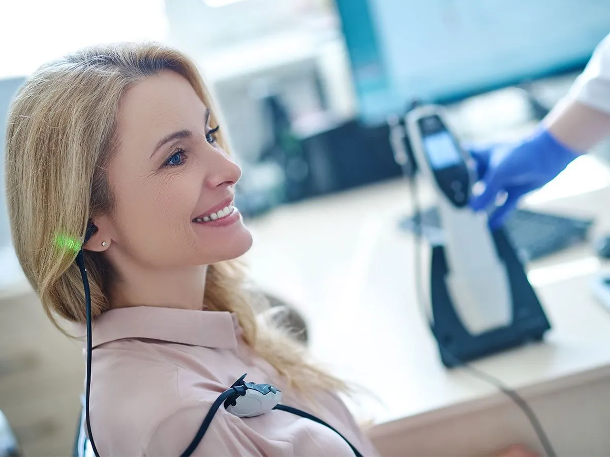 Eines der umfangreichsten Tätigkeitsfelder von Hörakustikern besteht in der Ermittlung eines Hörprofils, der sogenannten Ton- und Sprachaudiometrie. Über eigens dazu eingerichtete Geräte werden dem Kunden Töne unterschiedlicher Frequenz dargeboten, um die Grenzen ihrer Wahrnehmungsfähigkeit zu bestimmen. Weiterhin wird mit Hilfe eines definierten Testmaterials das Sprachverstehen ermittelt. Die formale Auswertung der Ergebnisse erfolgt dann über eine Spezial-Software, die dir die Datenbasis für deine Beratung bereitstellt.