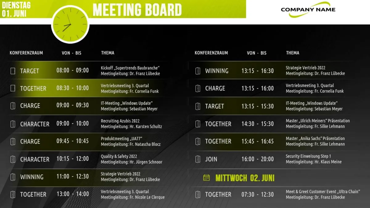 digitalSIGNAGE.de offeriert hierzu nicht nur die notwendige Hard- und Software, sondern auch die Unterstützung bei der Buchung über Exchange, Office 365, Google oder Notes. Es ist zudem möglich, das Design der Displays an die eigenen Kundenwünsche anzupassen. Die Integration von digitaler Verwaltung und Echtzeit-Display auf unterschiedlichsten Plattformen verringert den Ressourcen-Einsatz bezüglich Beschilderung oder Rückfragen erheblich.