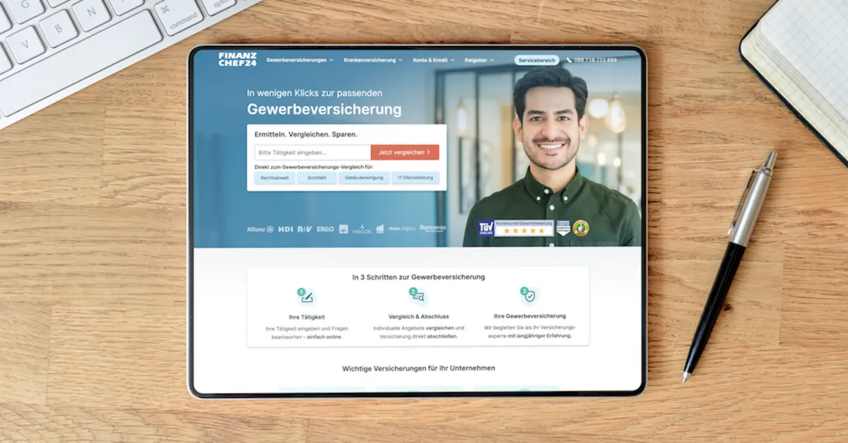 Finanzchef24 definiert den Markt der Gewerbeversicherungen für Einzel- und Kleinunternehmer (SME) neu. Das Münchener Insurtech vereint digitale Kommunikation und Prozesse mit der Kompetenz des Versicherungsspezialisten und der Unabhängigkeit einer Plattform. Unternehmer erhalten so die für sie optimale Absicherung und können sich voll auf ihr Geschäft konzentrieren. Über 40 Versicherer machen ihre Lösungen effizient und zielgenau den richtigen Kunden zugänglich. Das Konzept von Finanzchef24 hat bereits 50.000 aktive Kunden überzeugt. Mehr unter www.finanzchef24.de
