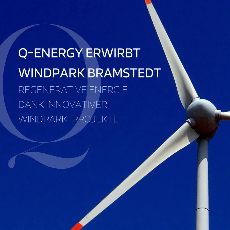Berlin, 04. Juli 2022: Mit dem Erwerb des Windparks Bramstedt setzt die Q-Energy Deutschland GmbH ihren Wachstumskurs fort. Die sechs Anlagen vom Typ Fuhrländer MD / 77 befinden sich in der Nähe von Bremen und versorgen seit 2007 mehr als 3.500 Haushalte mit umweltfreundlichem Windstrom.