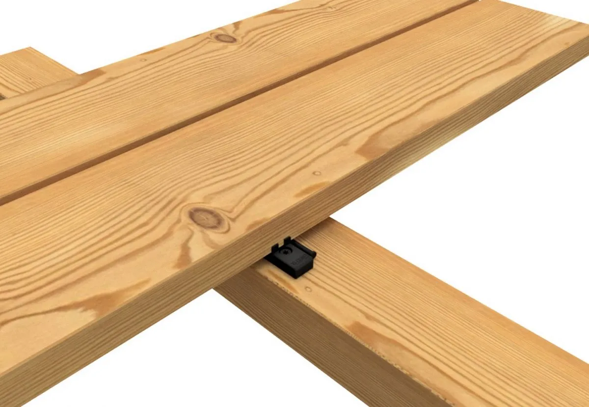 Befestigungspunkte erhöhen das Haarrissrisiko im Holz. Auch kann sich an dieser Stelle schneller Feuchtigkeit in das Holz eintragen oder Schmutz ablagern und so zu Fäulnis führen. Diesen möglichen Problemen beugt GleitFix von der Sihga GmbH aus Gmunden (Oberösterreich) vor. Das einteilige System mit Klippverbindung eignet sich für Dielen mit einer Stärke von mindestens 19 Millimetern und wird zwischen den Kunststoffverbindern an der Unterseite des Holzes verschraubt. So sind die Befestigungspunkte vor Witterungseinflüssen geschützt und die Sichtflächen bleiben unbeschädigt. Dies sorgt nicht nur für eine ansprechende Optik, sondern auch für eine längere Haltbarkeit der gesamten Konstruktion.